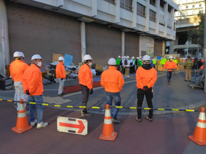 日曜朝7時からの突然の強行で、野宿者ネットワークのメンバーから知らせを受け、すぐ現場に行った。
